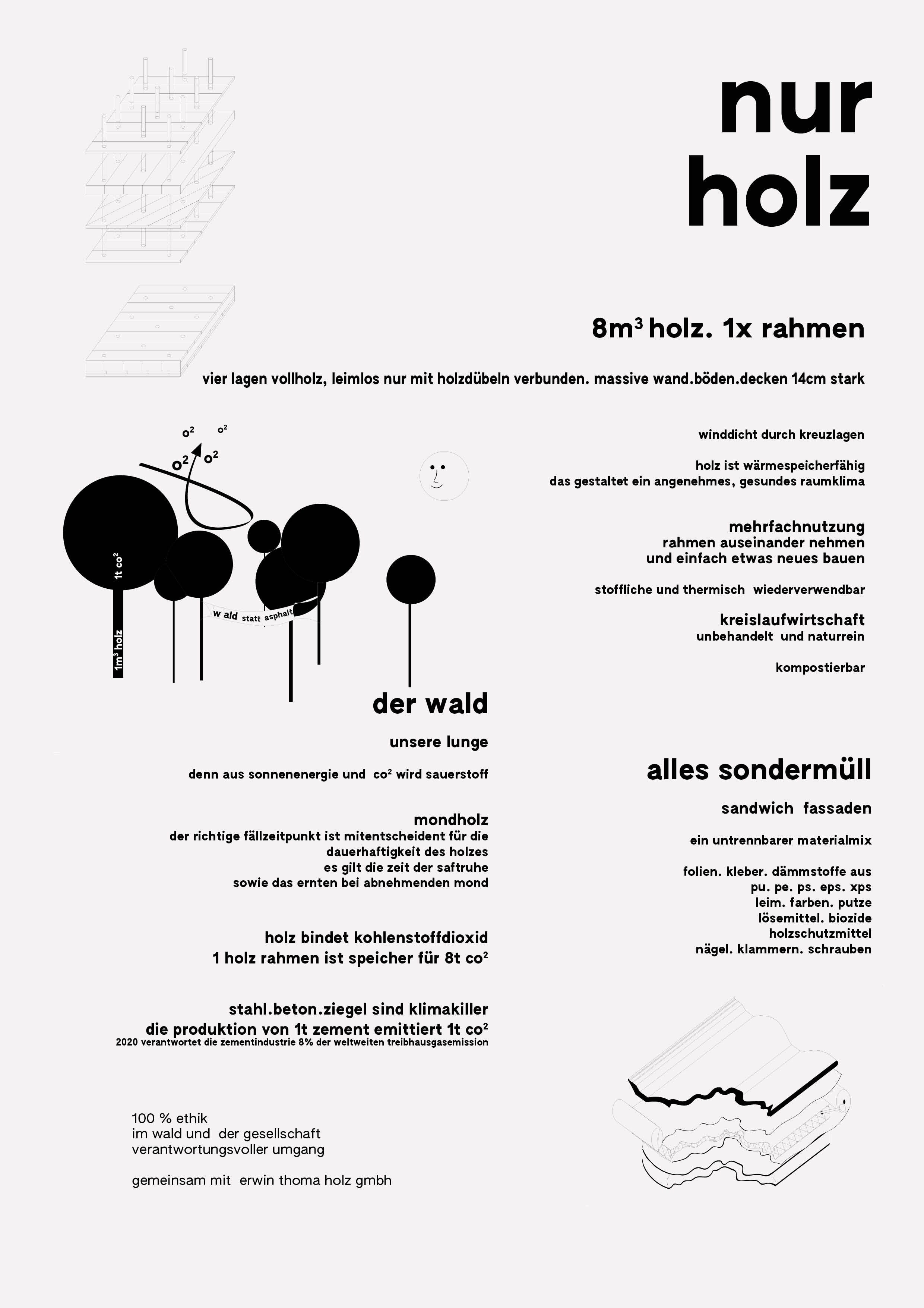 Ein verantwortungsvoller Umgang mit dem Wald macht Holz zu einem nach- wachsenden und nach- haltigen Baumaterial, das ein gesundes, angenehmes Raumklima erzeugt und mehrfach nutzbar bis kom- postierbar ist.